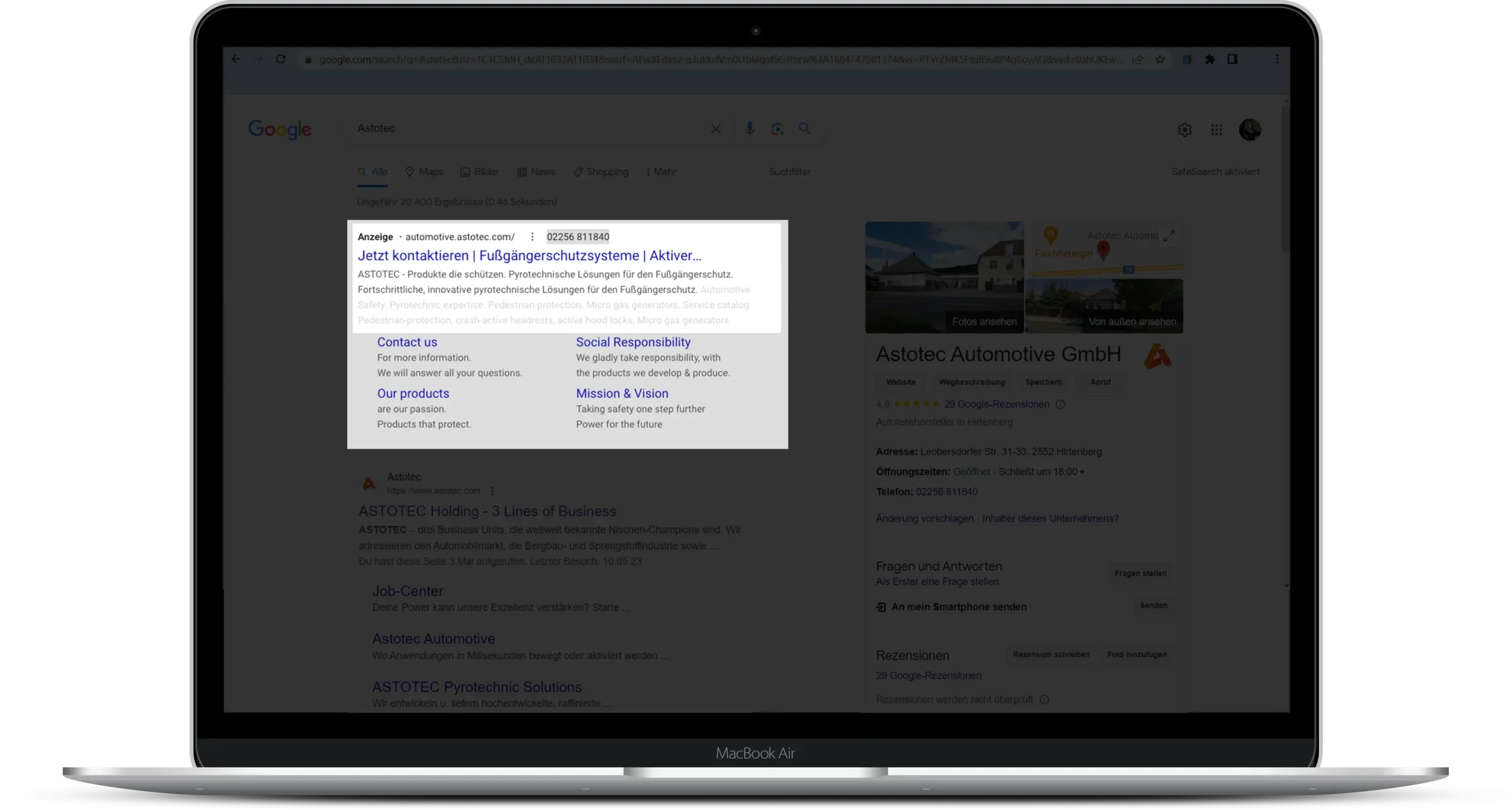Gemeinsam mit dem Marketingteam der ASTOTEC haben wir alle vorhandenen Online-Kanäle analysiert und hinsichtlich der Wirksamkeit hinterfragt. Die Idee war es, eine gesamte, stringente Kommunikation zu etablieren und mittels bezahlter Kommunikation über Social Media und Suchmaschinen zu unterstützen, um die Reichweite in der Zielgruppe und den Expertenstatus zu unterstreichen.